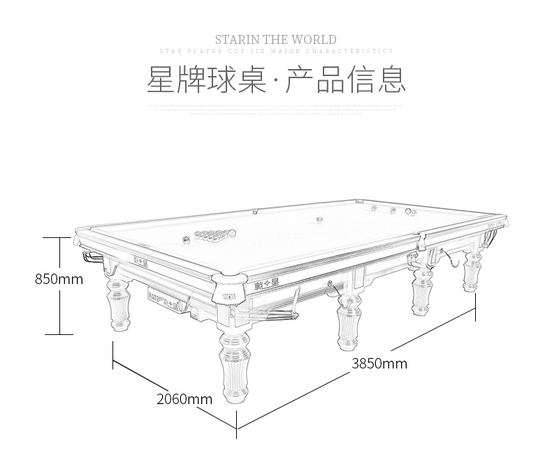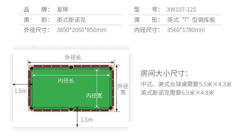 星牌桌球臺 英式斯諾克臺球桌 XW107-12S