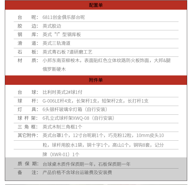 • 類型:英式臺球桌